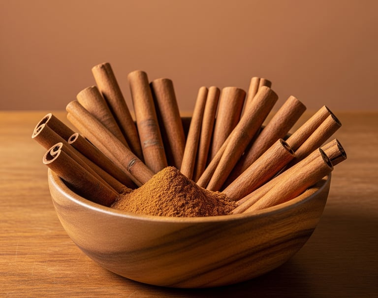 A canela é uma especiaria obtida da casca interna da árvore Cinnamomum, rica em óleos essenciais, antioxidantes e compostos com propriedades medicinais. Entre seus principais benefícios estão: