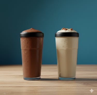 Shakes industrializados podem conter muito açúcar e aditivos — atenção aos rótulos.