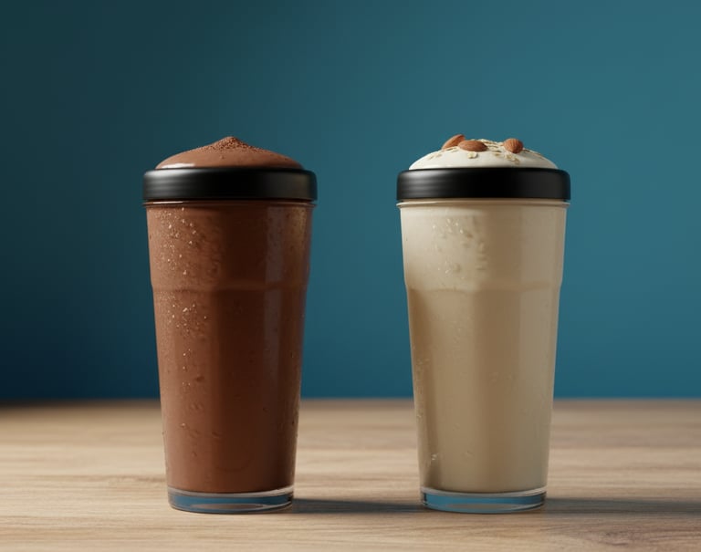Pós-treino: Shakes proteicos ajudam na recuperação muscular.
